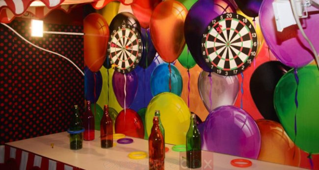 • Casetas de ferias, tanto de comida como de juegos de feria (pesca de patitos, tiro al blanco, mini-basket, dardos, etc)