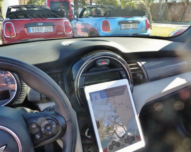 Nosotros nos encargaremos de proveer los coches cabrio (con una capacidad máxima de 4 personas) así como un iPad. Dicho iPad se encargará de mostrarte en tiempo real tu ubicación exacta (gracias al sistema de geolocalización) además de mostrarte los diferentes puntos repartidos por el mapa. Para darle un toque de competitividad a la actividad, tendrás que completar una serie de pruebas y resolver acertijos durante el trayecto.