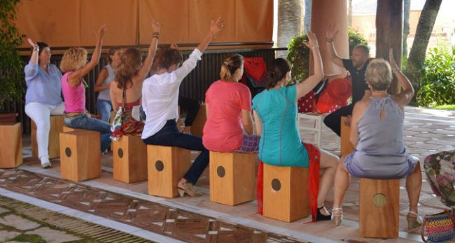 La percussion andalouse est l’activité idéale pour des groupe de toutes tailles. En plus d’être stimulante et très amusante elle vous approche également à la culture musicale de la région. Elle peut être organisée à l’hôtel, la plage, en montagne ou n’importe quel lieu de votre choix.